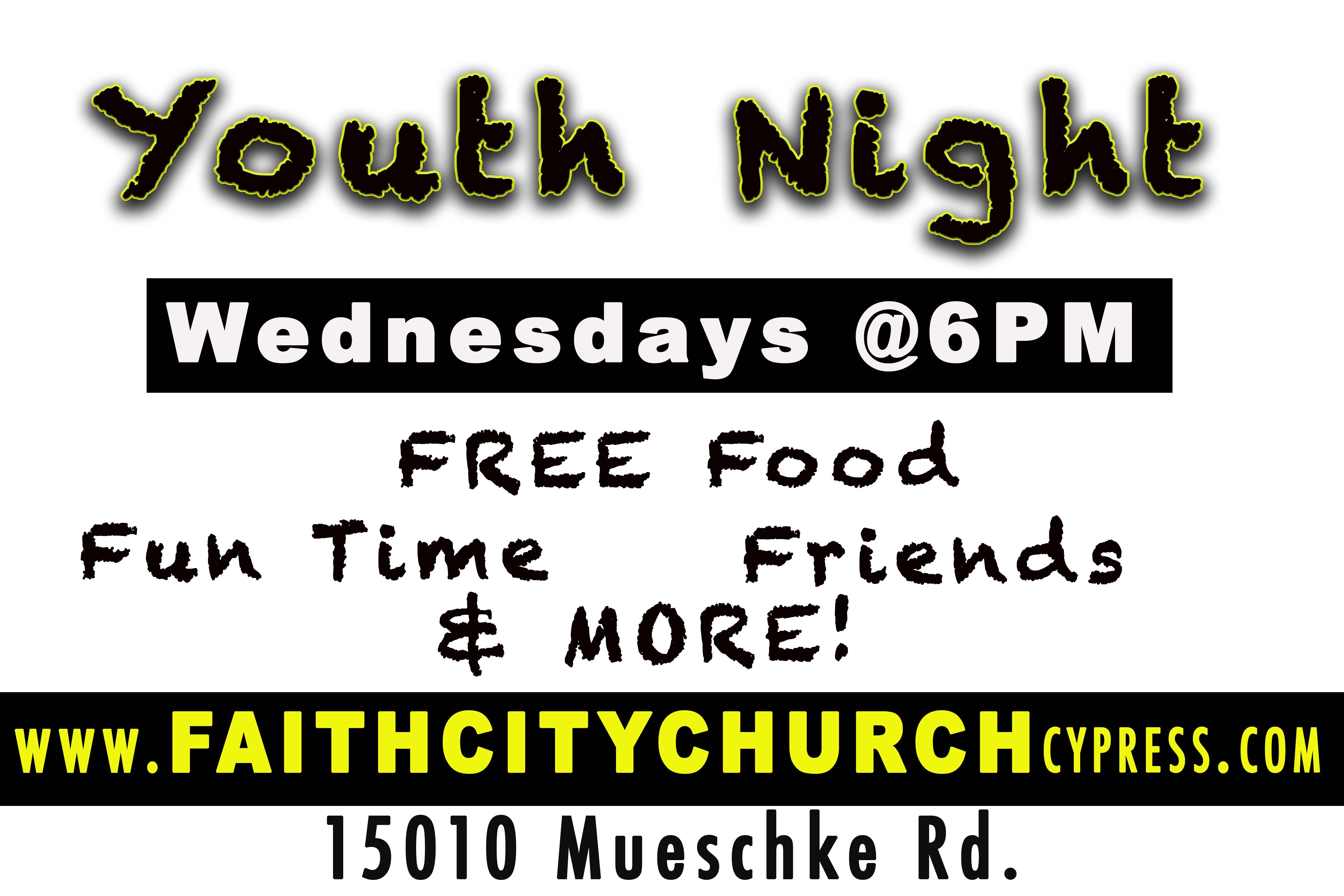 Wednesdays nights we have Bible study, This is where they can ask Bible questions and have fun with friends. There is free food, games, breakout group sessions, music and more!
